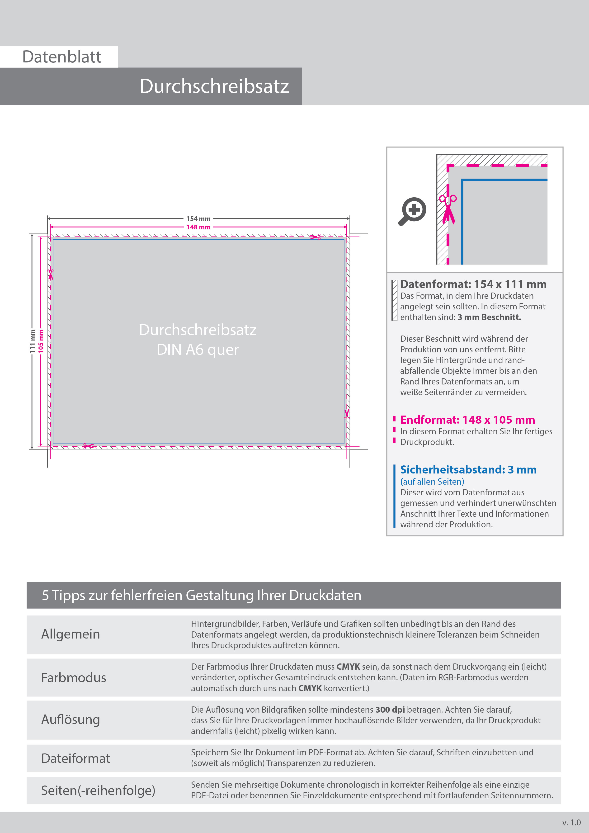 Durchschreibesätze DIN A6 quer, 3-fach, 4/0-farbig, 50 Sätze je Block
